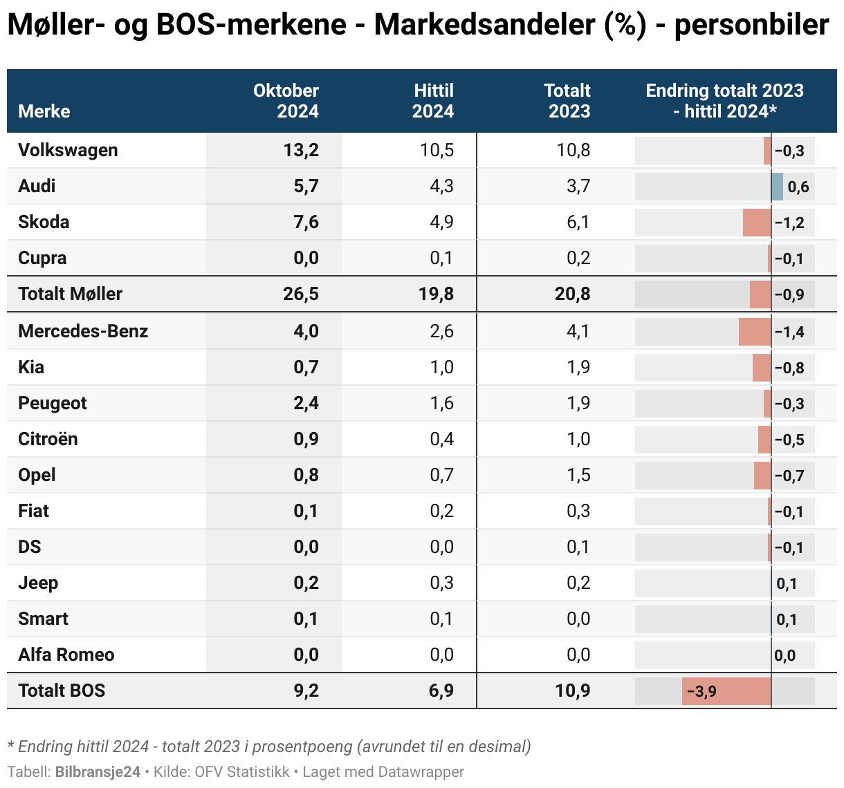 Møller- og BOS-merkene - Markedsandeler (%) - personbiler