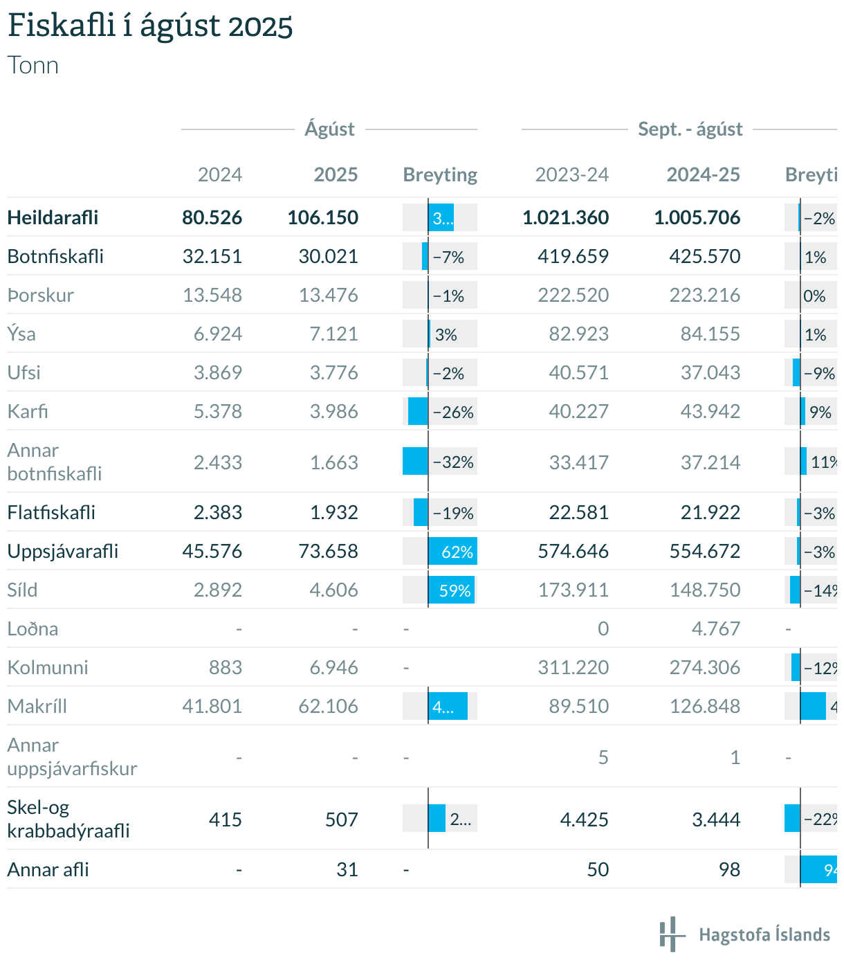 Fiskafli í ágúst 2025