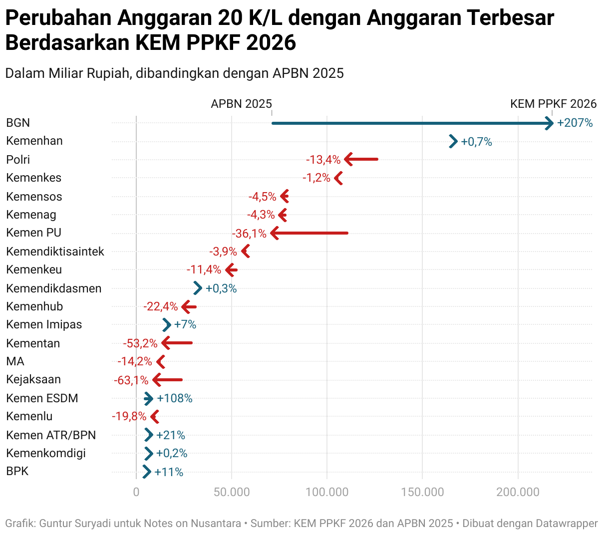 Dalam Miliar Rupiah, dibandingkan dengan APBN 2025