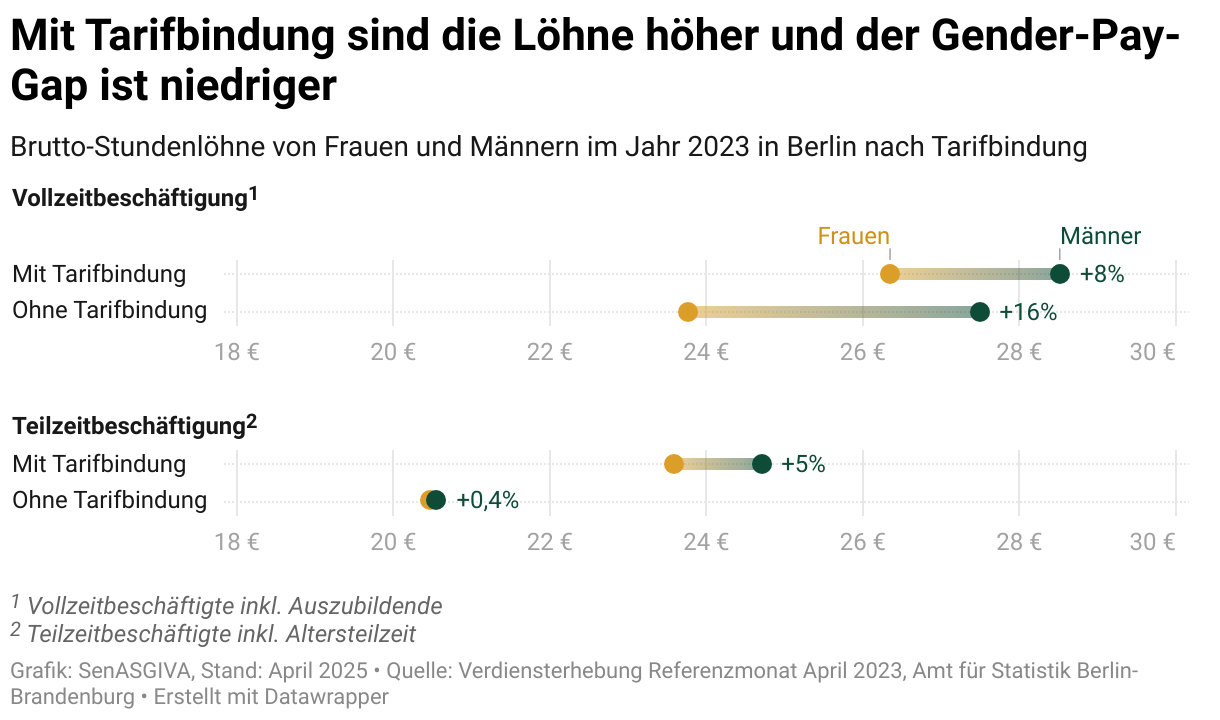 Mit Tarifbindung sind die Löhne höher und der Gender-Pay-Gap ist niedriger