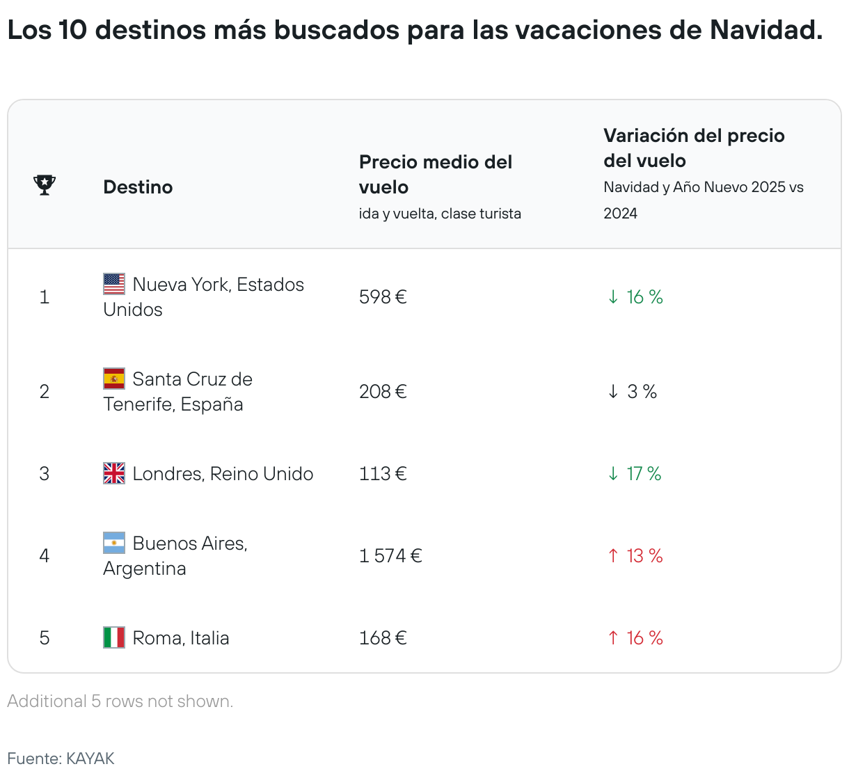 Los 10 destinos más buscados para las vacaciones de Navidad.