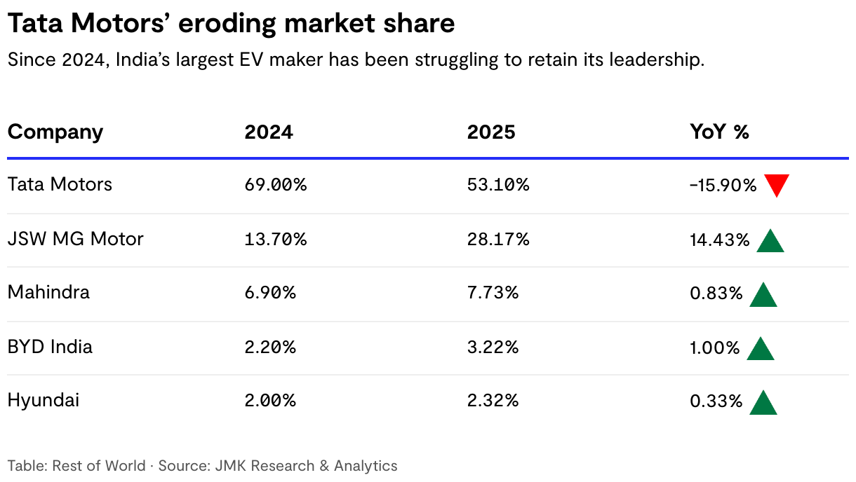 Since 2024, India’s largest EV maker has been struggling to retain its leadership.