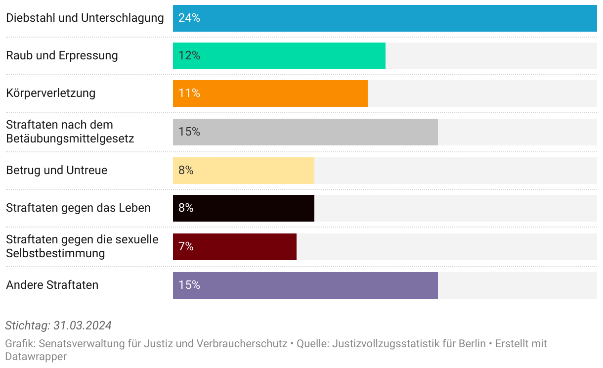Grafik: Senatsverwaltung für Justiz und VerbraucherschutzQuelle: Justizvollzugsstatistik für BerlinGrafik herunterladenErstellt mit Datawrapper
