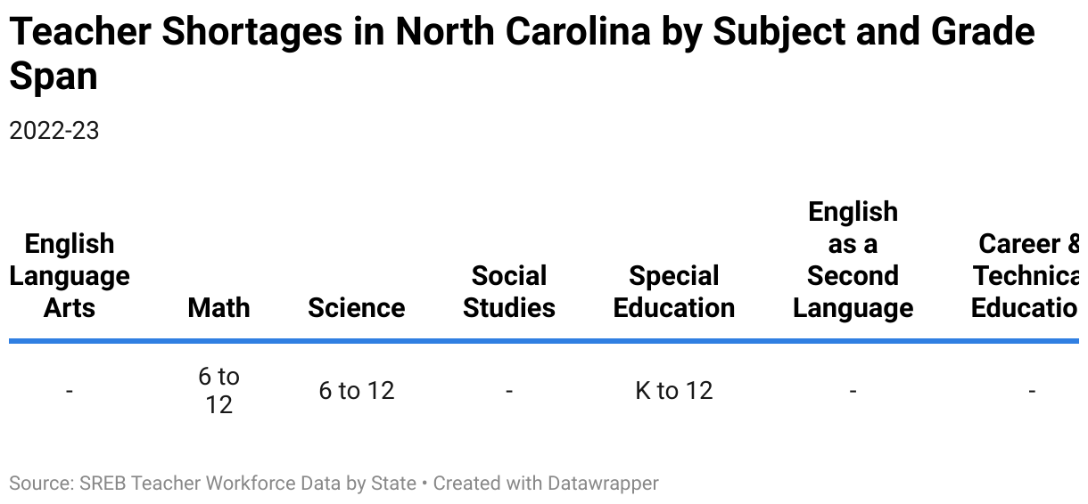 Teacher Shortages in North Carolina by Subject and Grade Span