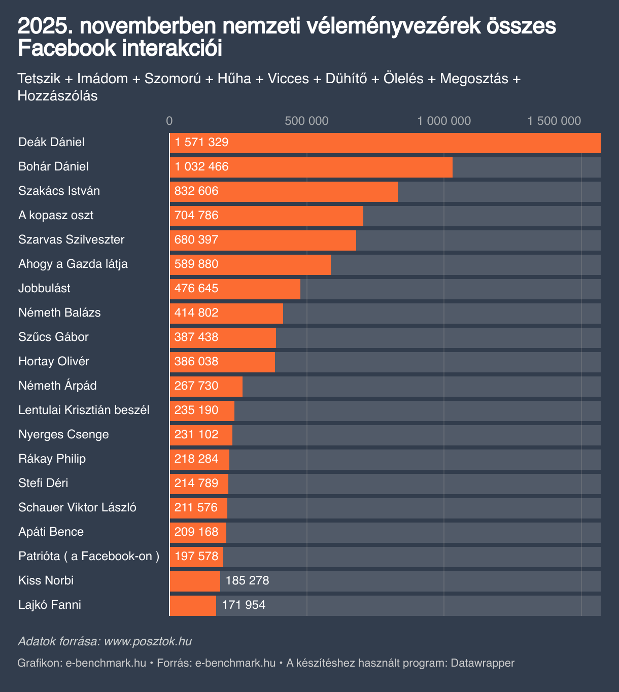 2025. novemberben nemzeti véleményvezérek összes Facebook interakciói