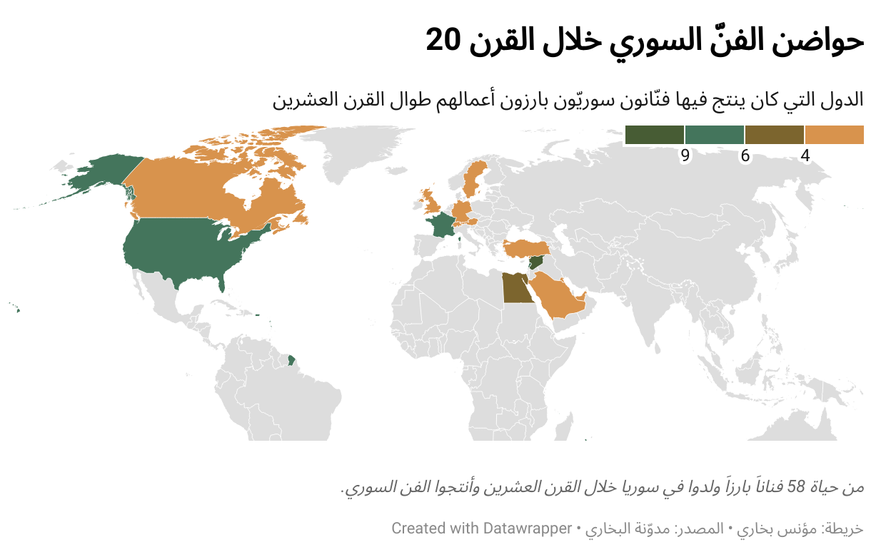 الدول التي كان ينتج فيها فنّانون سوريّون بارزون أعمالهم طوال القرن العشرين