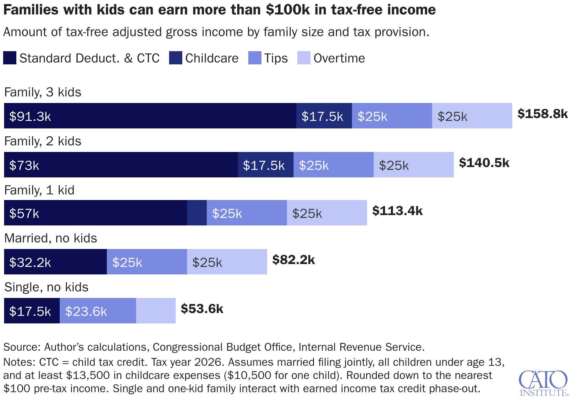 Amount of tax-free adjusted gross income by family size and tax provision.