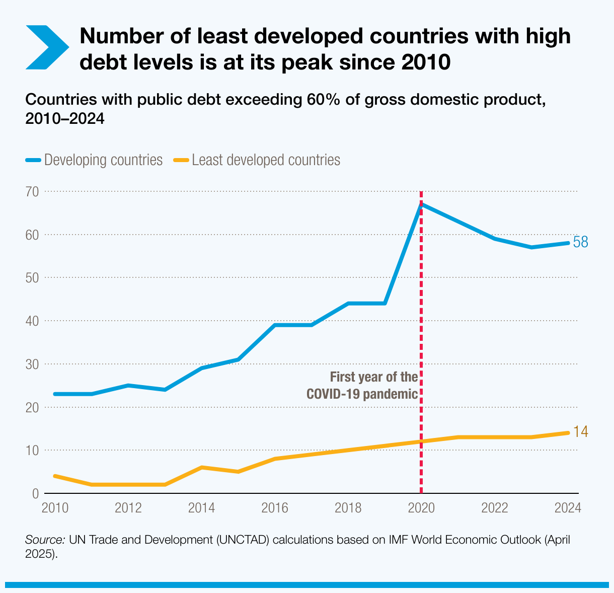 Countries with public debt exceeding 60% of gross domestic product, 2010–2024