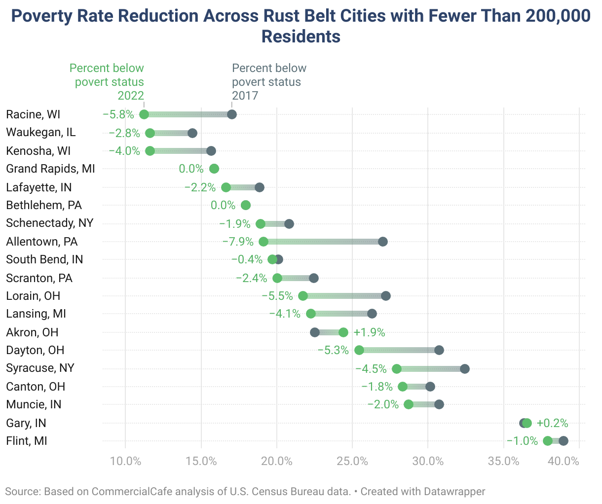 Poverty Rate Reduction Across Rust Belt Cities with Fewer Than 200,000 Residents