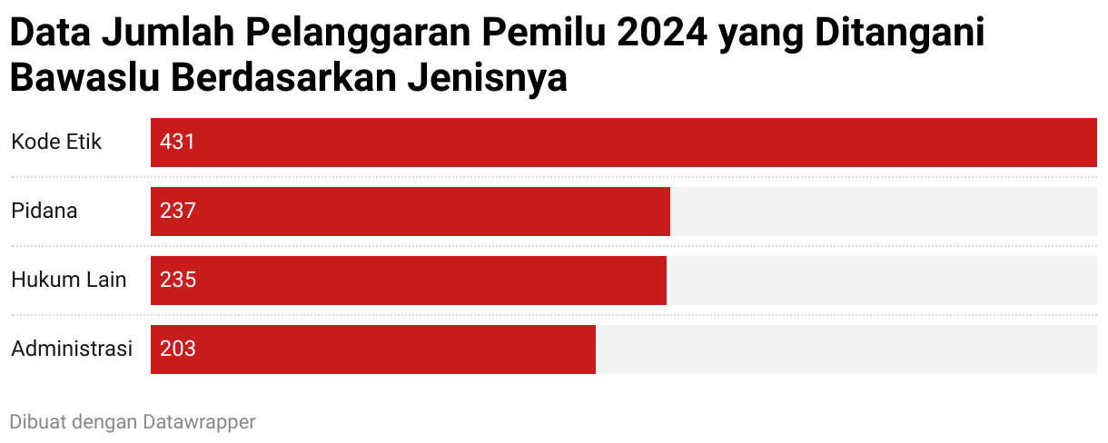 Data Jumlah Pelanggaran Pemilu 2024 yang Ditangani Bawaslu Berdasarkan Jenisnya