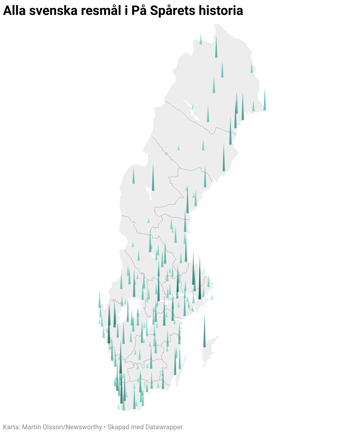 Alla svenska resmål i På Spårets historia