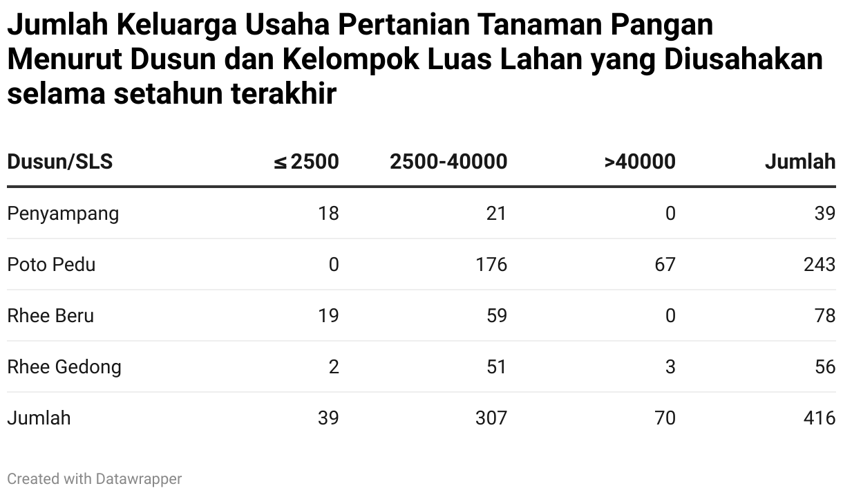 Jumlah Keluarga Usaha Pertanian Tanaman Pangan Menurut Dusun dan Kelompok Luas Lahan yang Diusahakan selama setahun terakhir