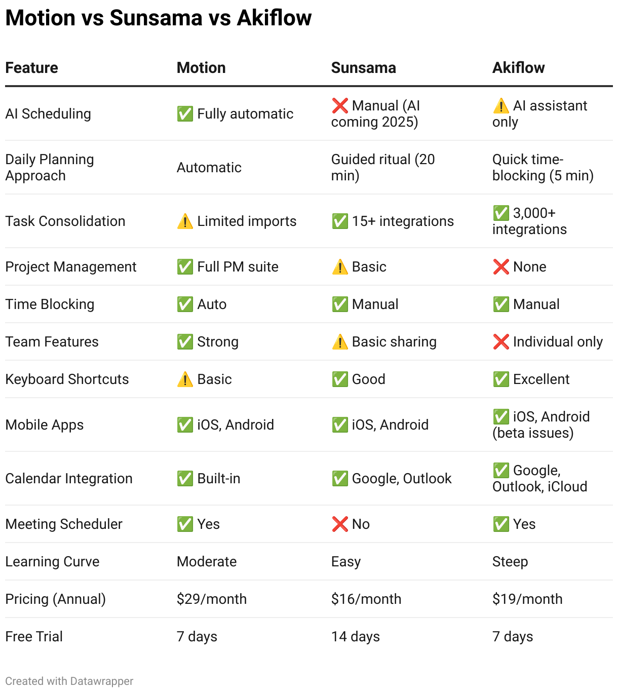 Motion vs Sunsama vs Akiflow