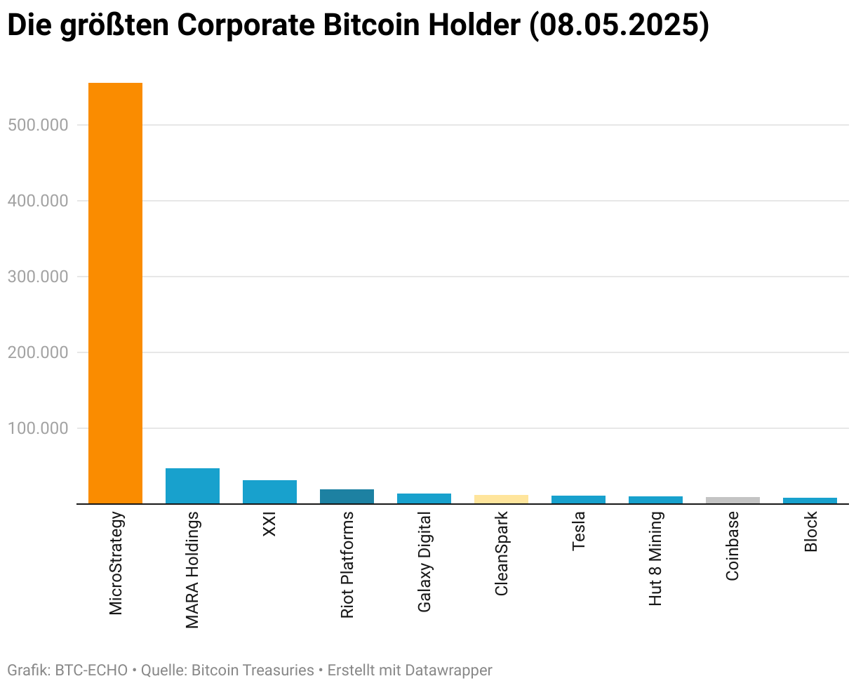 Die größten Corporate Bitcoin Holder (08.05.2025)
