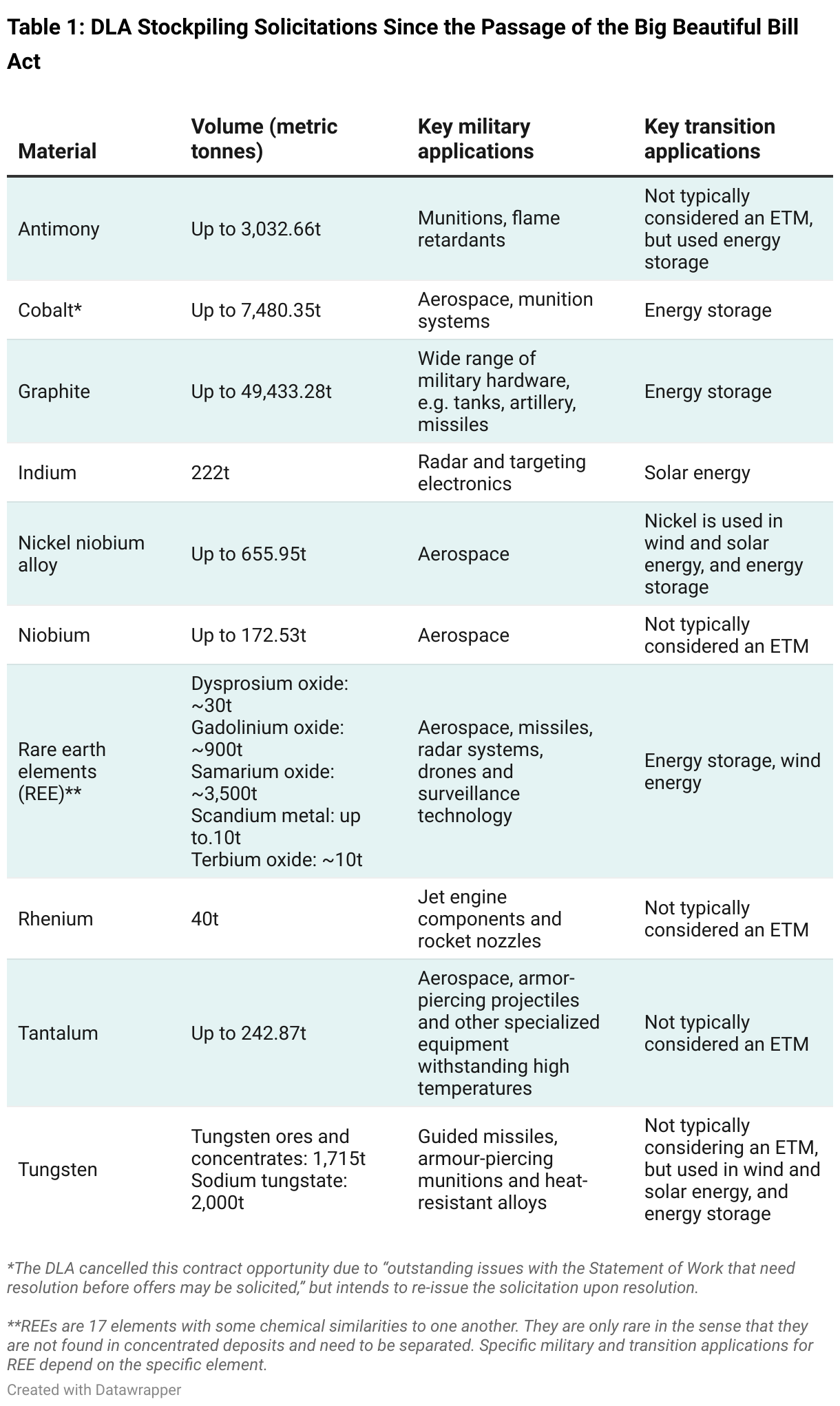 Table 1: DLA Stockpiling Solicitations Since the Passage of the Big Beautiful Bill Act
