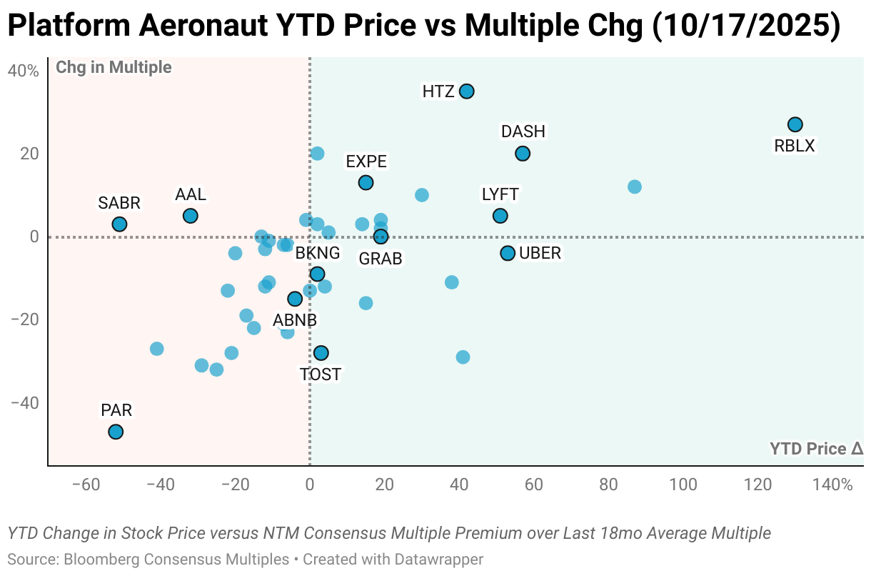 Platform Aeronaut YTD Price vs Multiple Chg (10/17/2025)