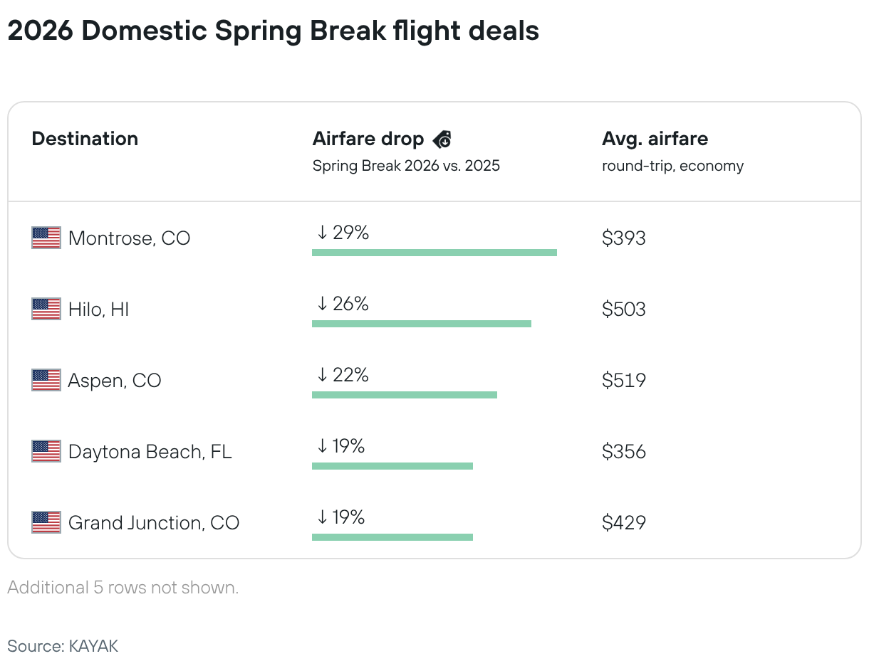2026 Domestic Spring Break flight deals