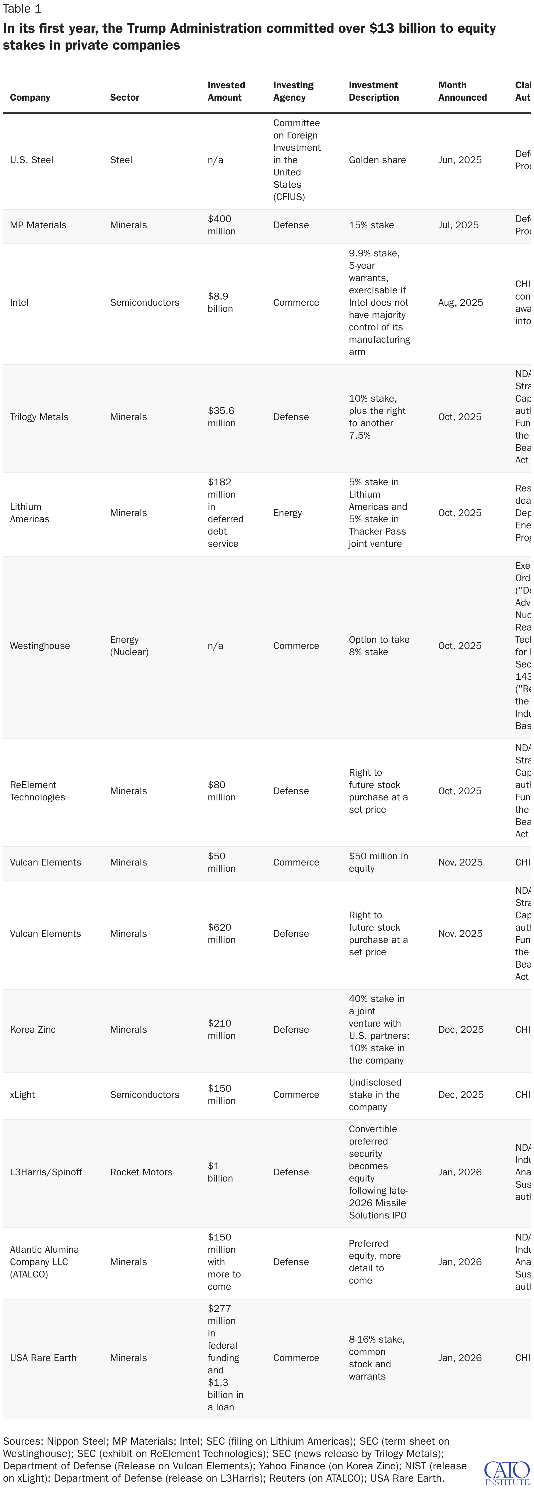 In its first year, the Trump Administration committed over $13 billion to equity stakes in private companies