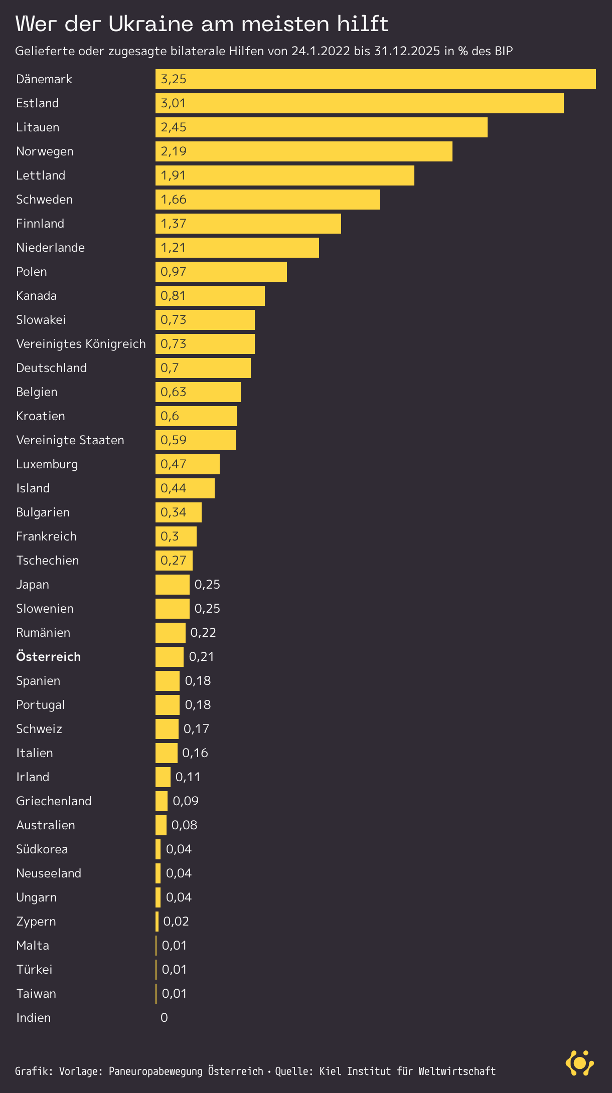Gelieferte oder zugesagte bilaterale Hilfen von 24.1.2022 bis 31.12.2025 in % des BIP