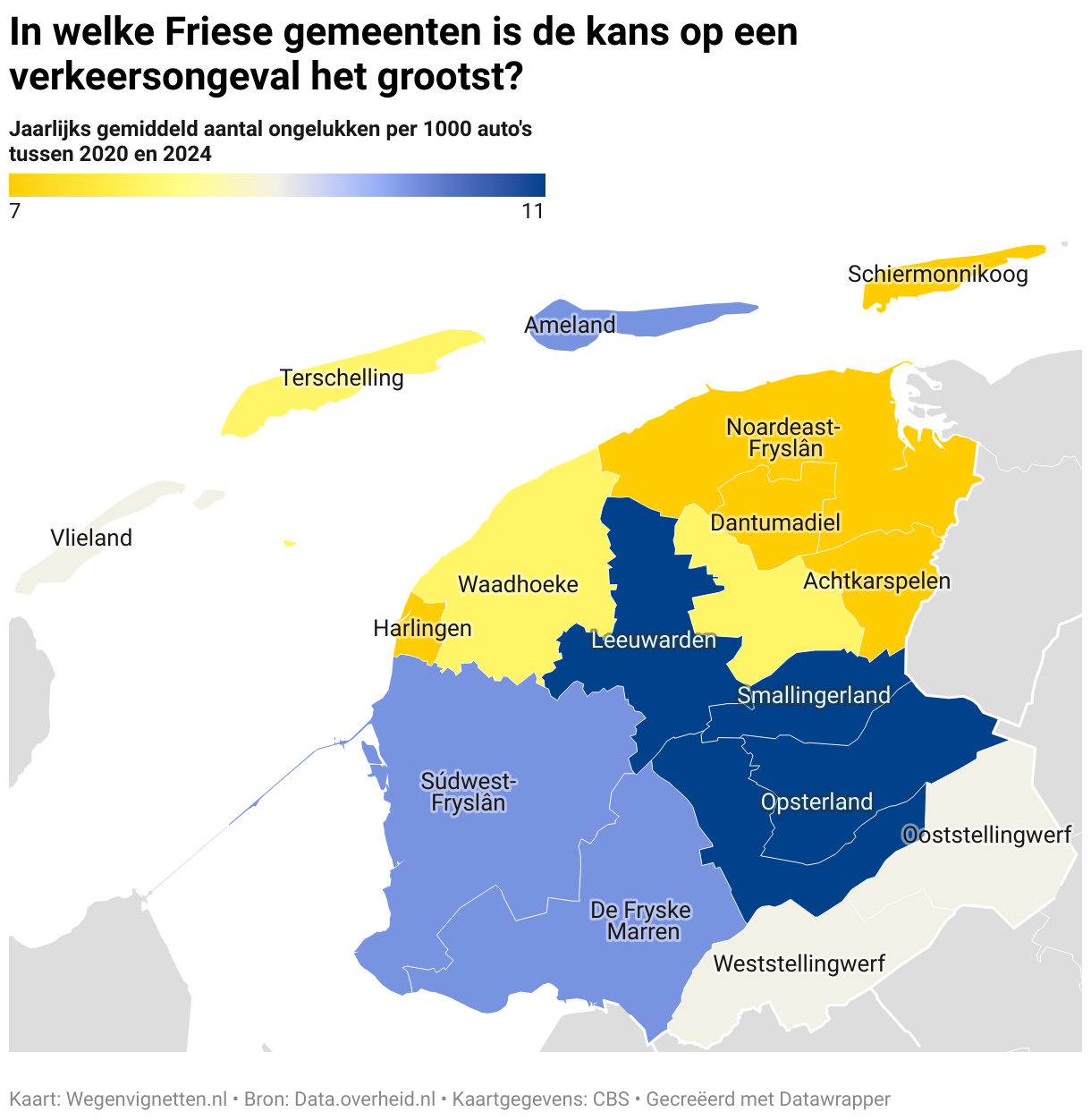 In welke Friese gemeenten is de kans op een verkeersongeval het grootst?