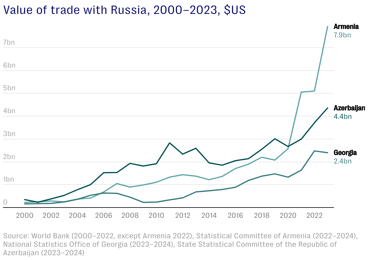 Value of trade with Russia, 2000–2023, $US
