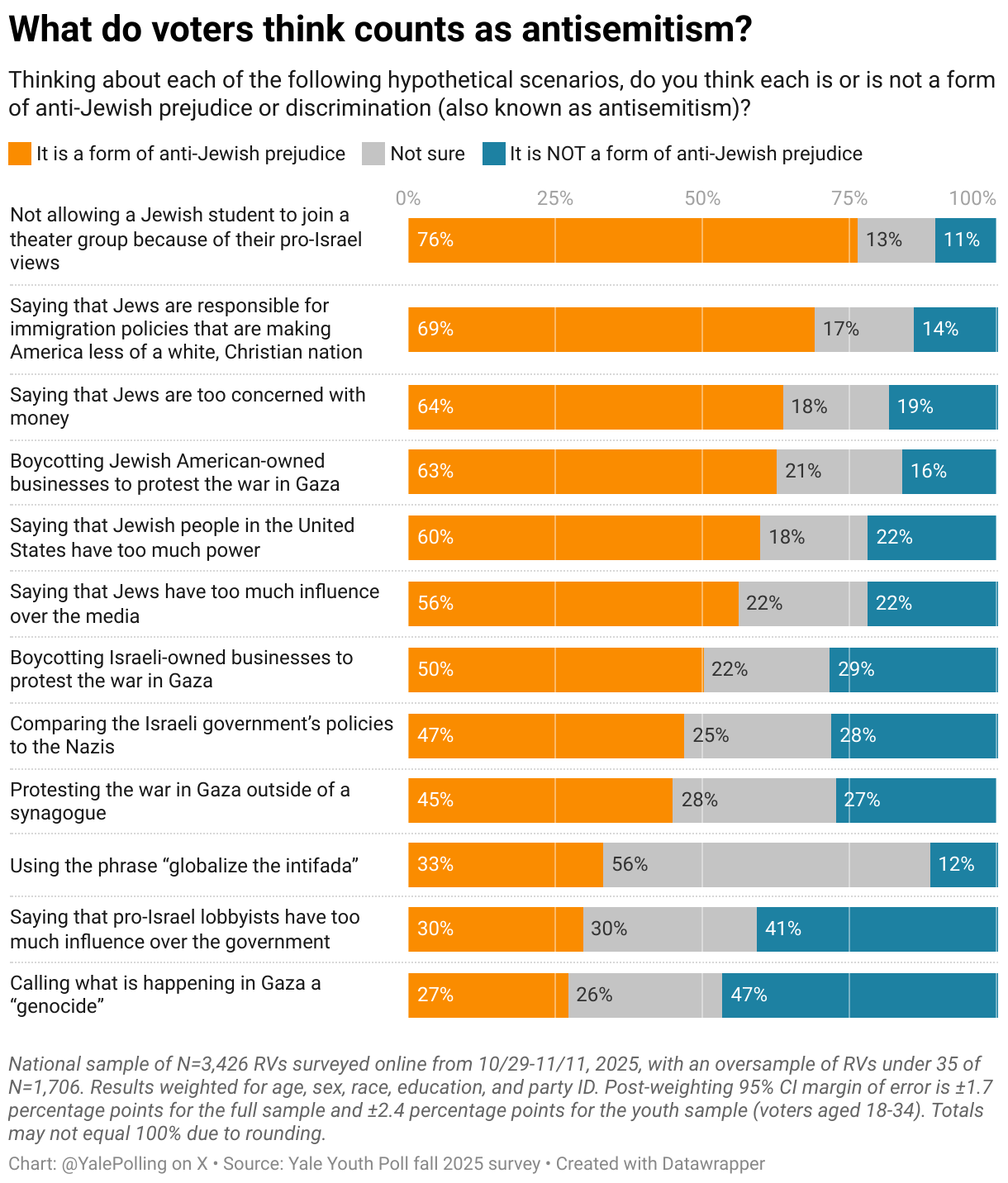 Thinking about each of the following hypothetical scenarios, do you think each is or is not a form of anti-Jewish prejudice or discrimination (also known as antisemitism)?