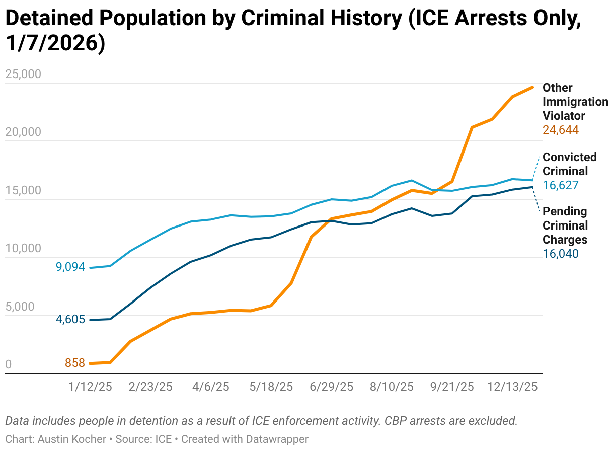 Detained Population by Criminal History (ICE Arrests Only, 1/7/2026)