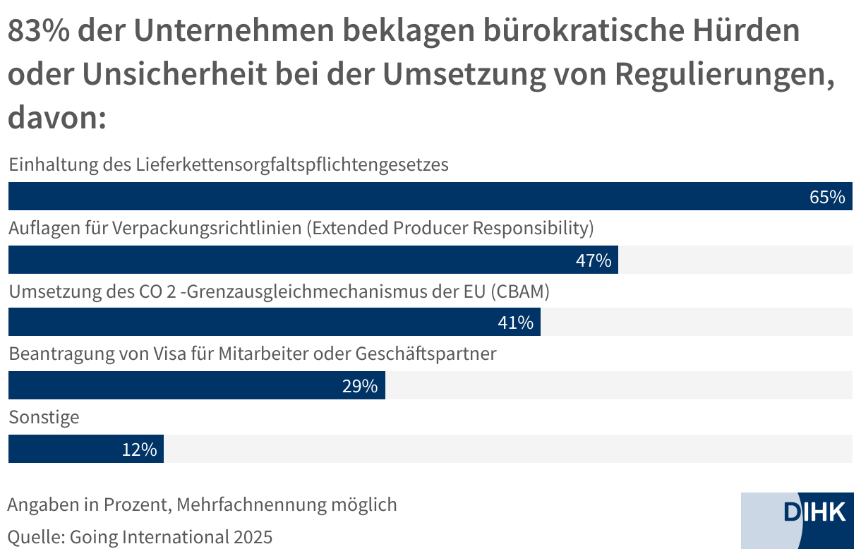 83% der Unternehmen beklagen bürokratische Hürden oder Unsicherheit bei der Umsetzung von Regulierungen, davon: