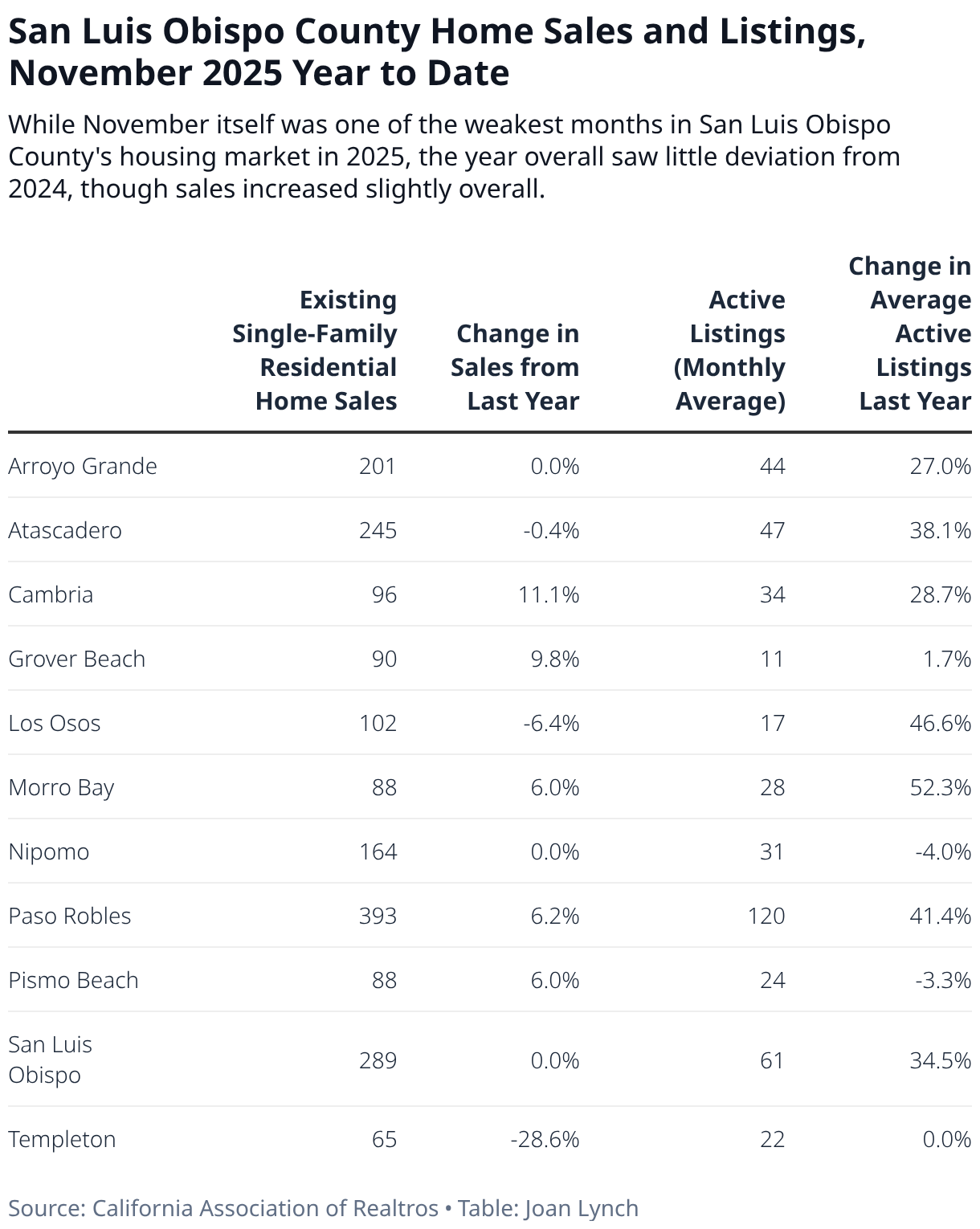 While November itself was one of the weakest months in San Luis Obispo County's housing market in 2025, the year overall saw little deviation from 2024, though sales increased slightly overall.
