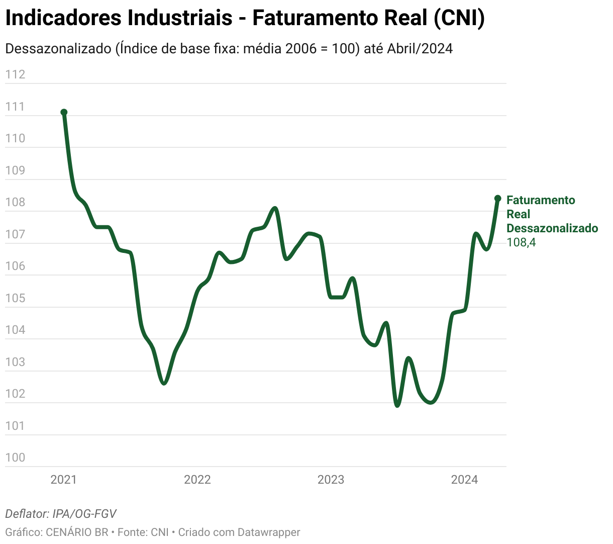 Dessazonalizado (Índice de base fixa: média 2006 = 100) até Abril/2024