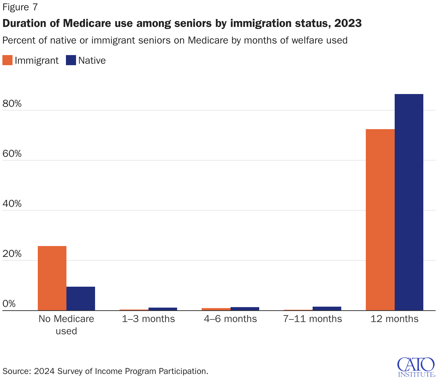 Percent of native or immigrant seniors on Medicare by months of welfare used