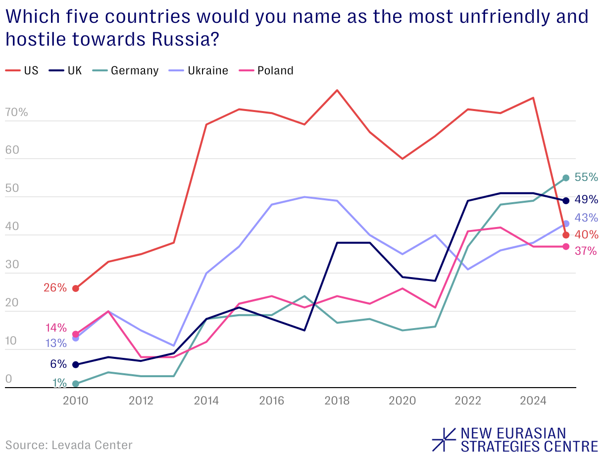 Which five countries would you name as the most unfriendly and hostile towards Russia?