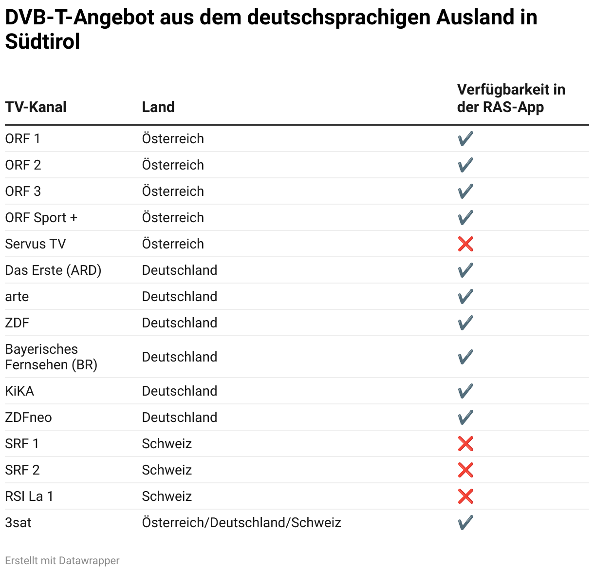 DVB-T-Angebot aus dem deutschsprachigen Ausland in Südtirol