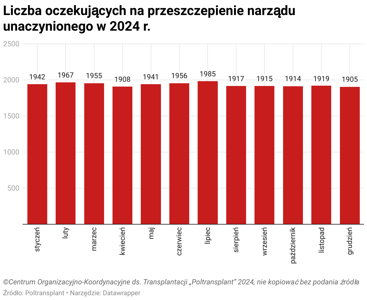 Liczba oczekujących na przeszczepienie narządu unaczynionego w 2024 r.