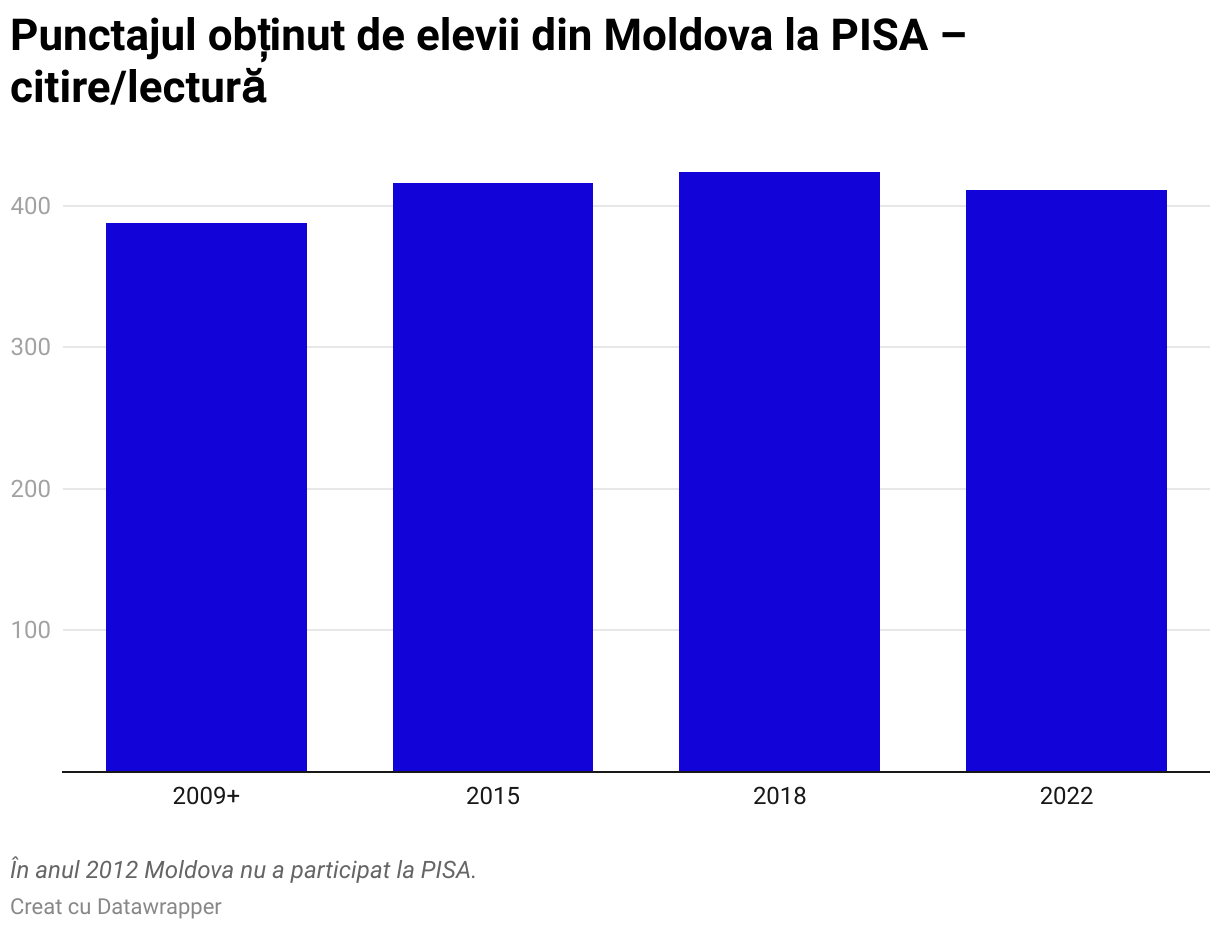 Punctajul obținut de elevii din Moldova la PISA – citire/lectură