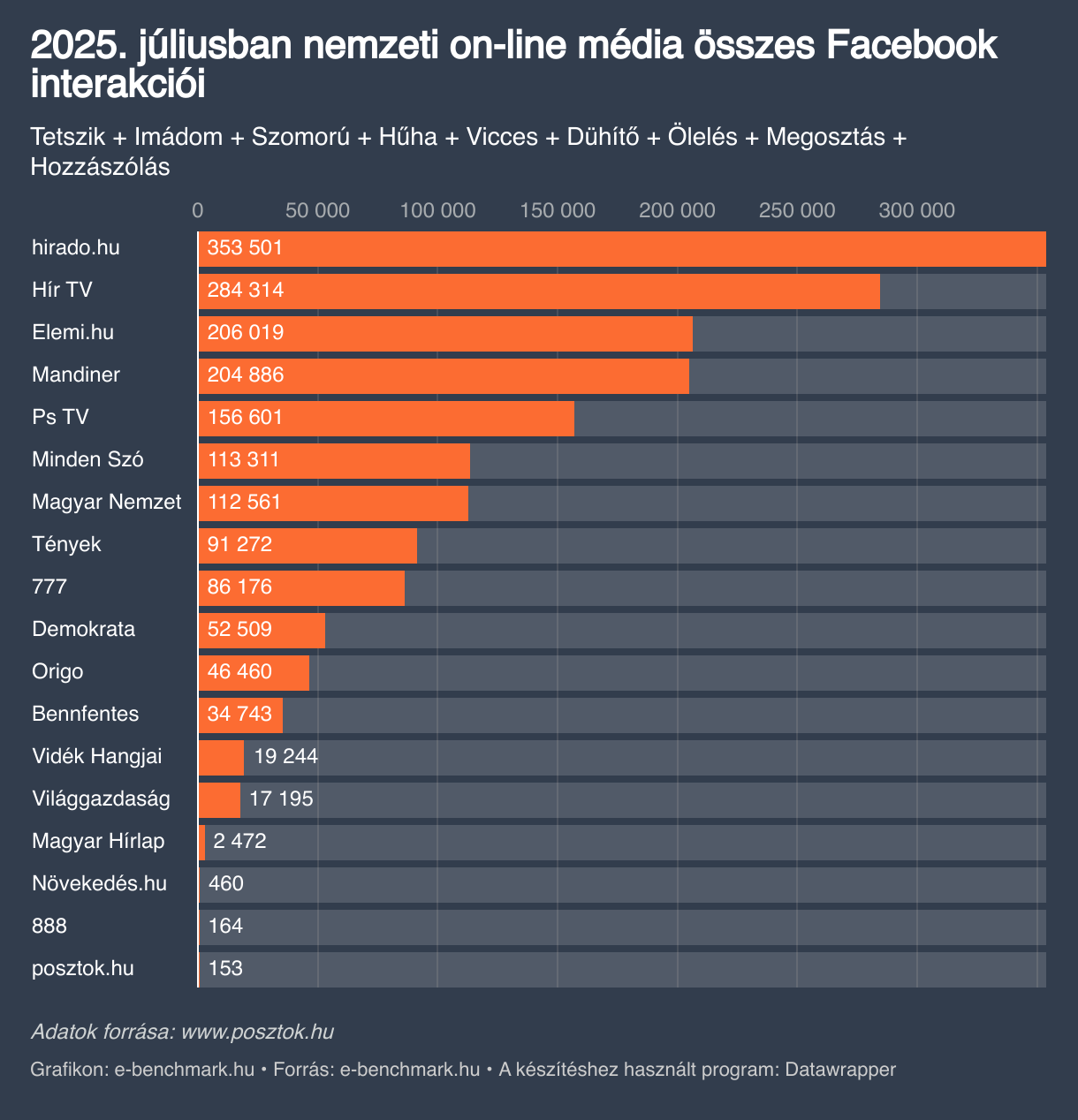 2025. júliusban nemzeti on-line média összes Facebook interakciói