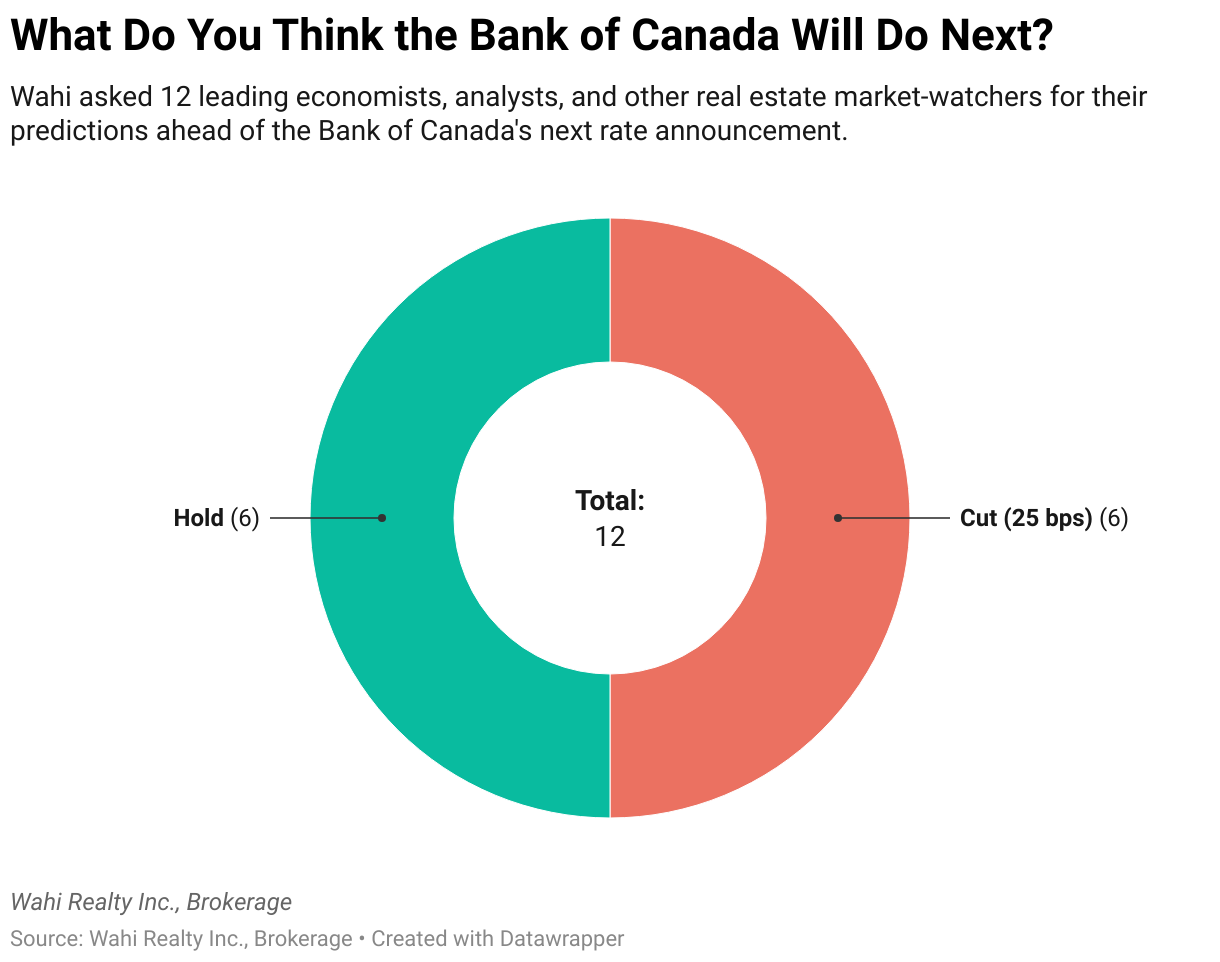 Wahi asked 12 leading economists, analysts, and other real estate market-watchers for their predictions ahead of the Bank of Canada's next rate announcement.