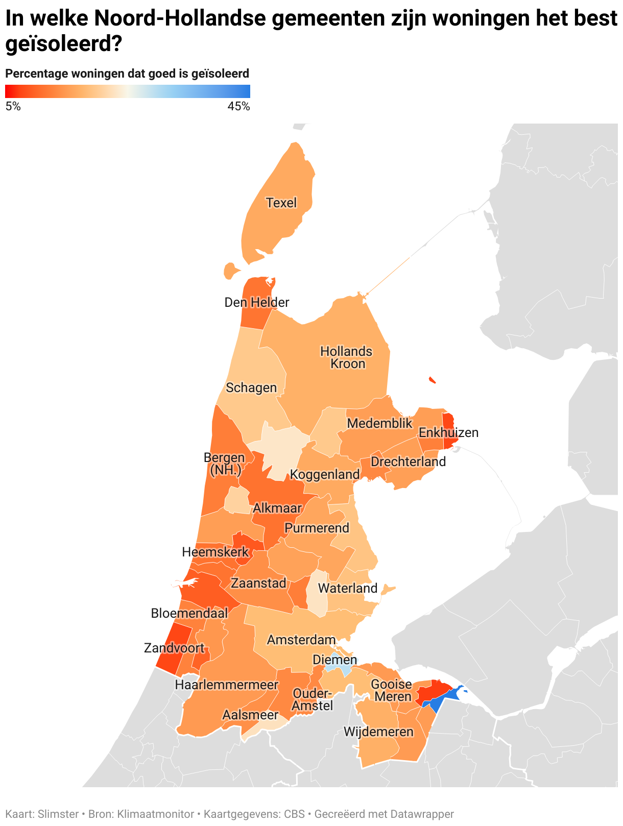 In welke Noord-Hollandse gemeenten zijn woningen het best geïsoleerd?