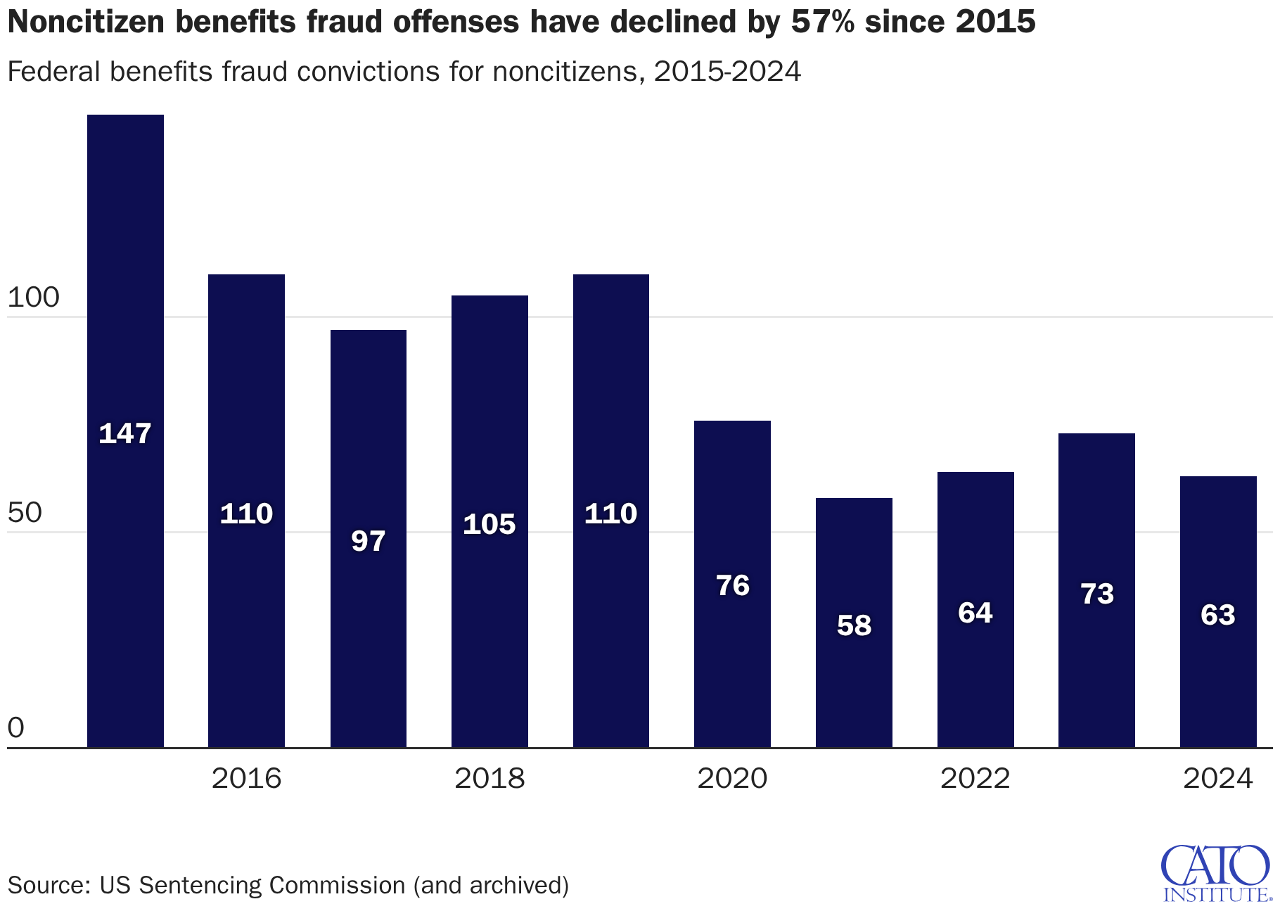 Federal benefits fraud convictions for noncitizens, 2015-2024