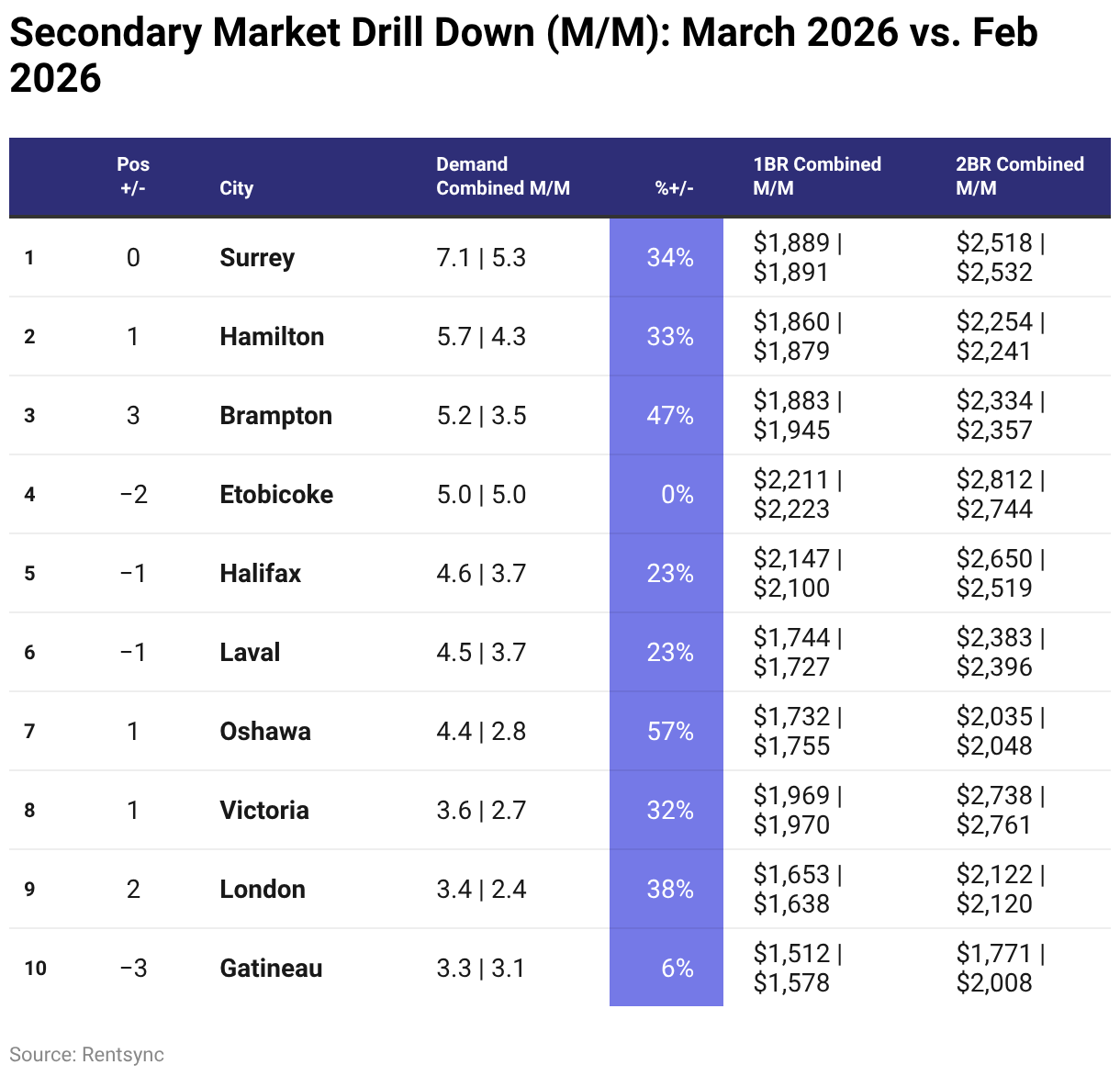 Secondary Market Drill Down (M/M): March 2026 vs. Feb 2026