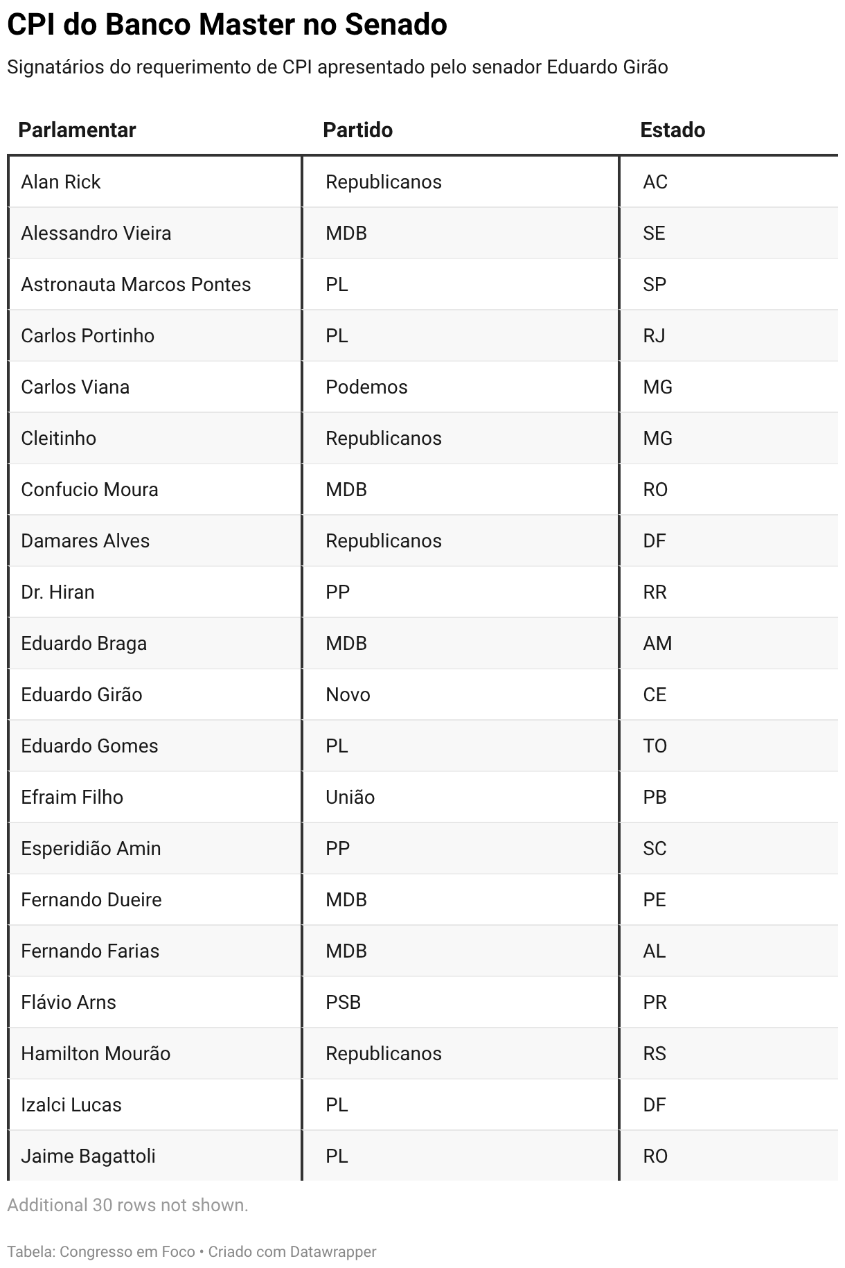 Signatários do requerimento de CPI apresentado pelo senador Eduardo Girão