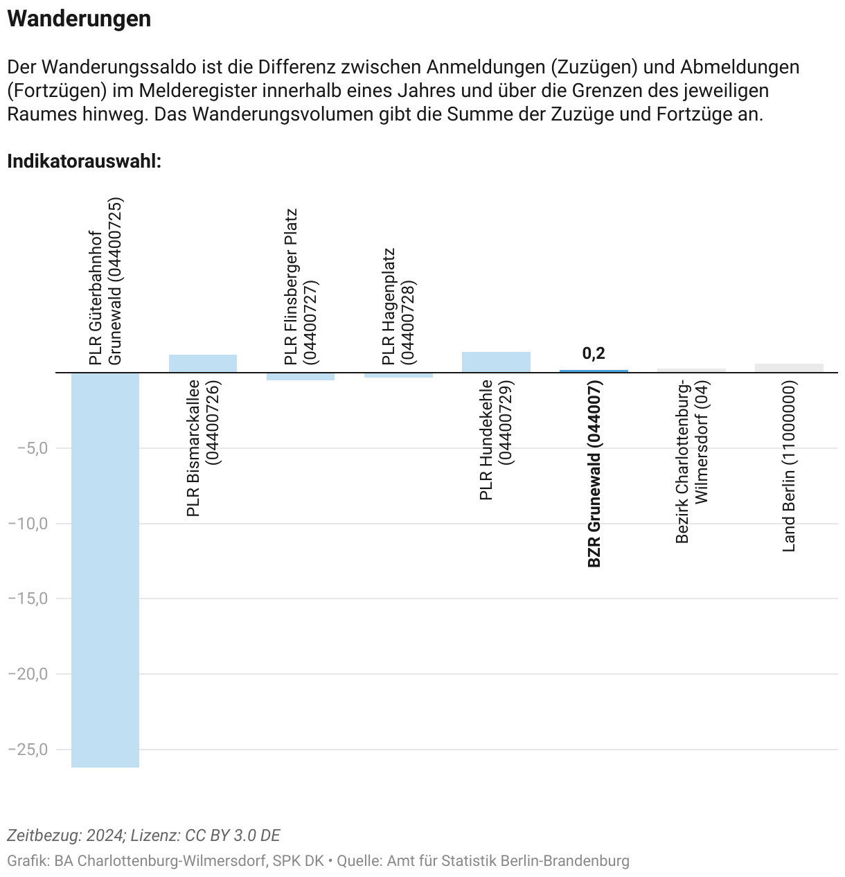 Der Wanderungssaldo ist die Differenz zwischen Anmeldungen (Zuzügen) und Abmeldungen (Fortzügen) im Melderegister innerhalb eines Jahres und über die Grenzen des jeweiligen Raumes hinweg. Das Wanderungsvolumen gibt die Summe der Zuzüge und Fortzüge an.