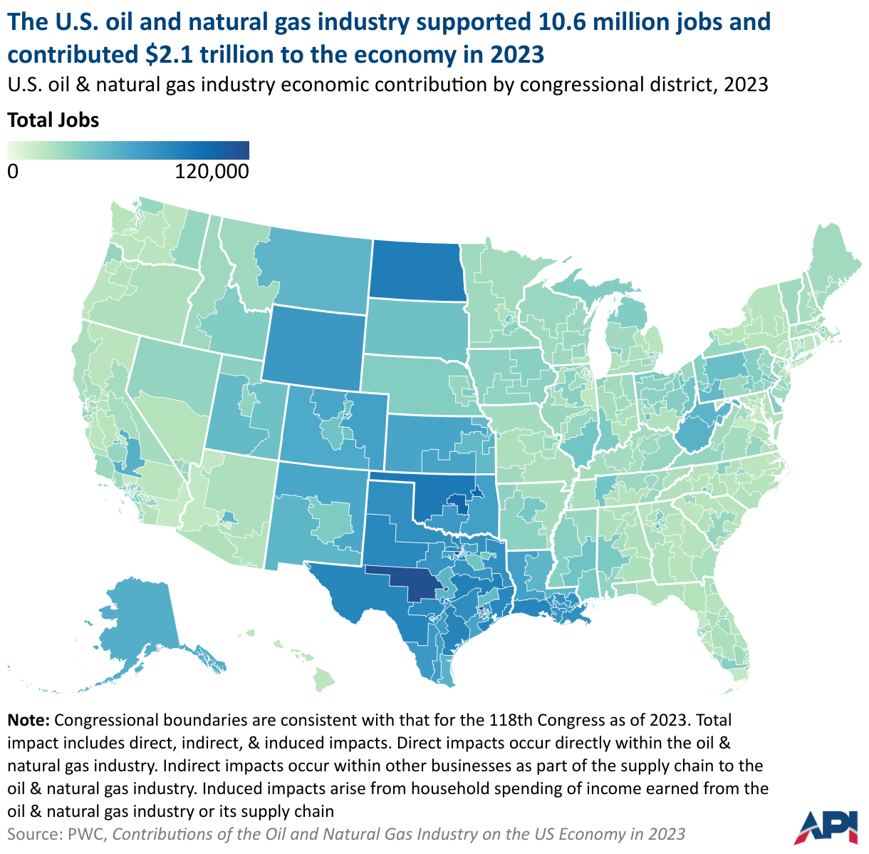 U.S. oil & natural gas industry economic contribution by congressional district, 2023