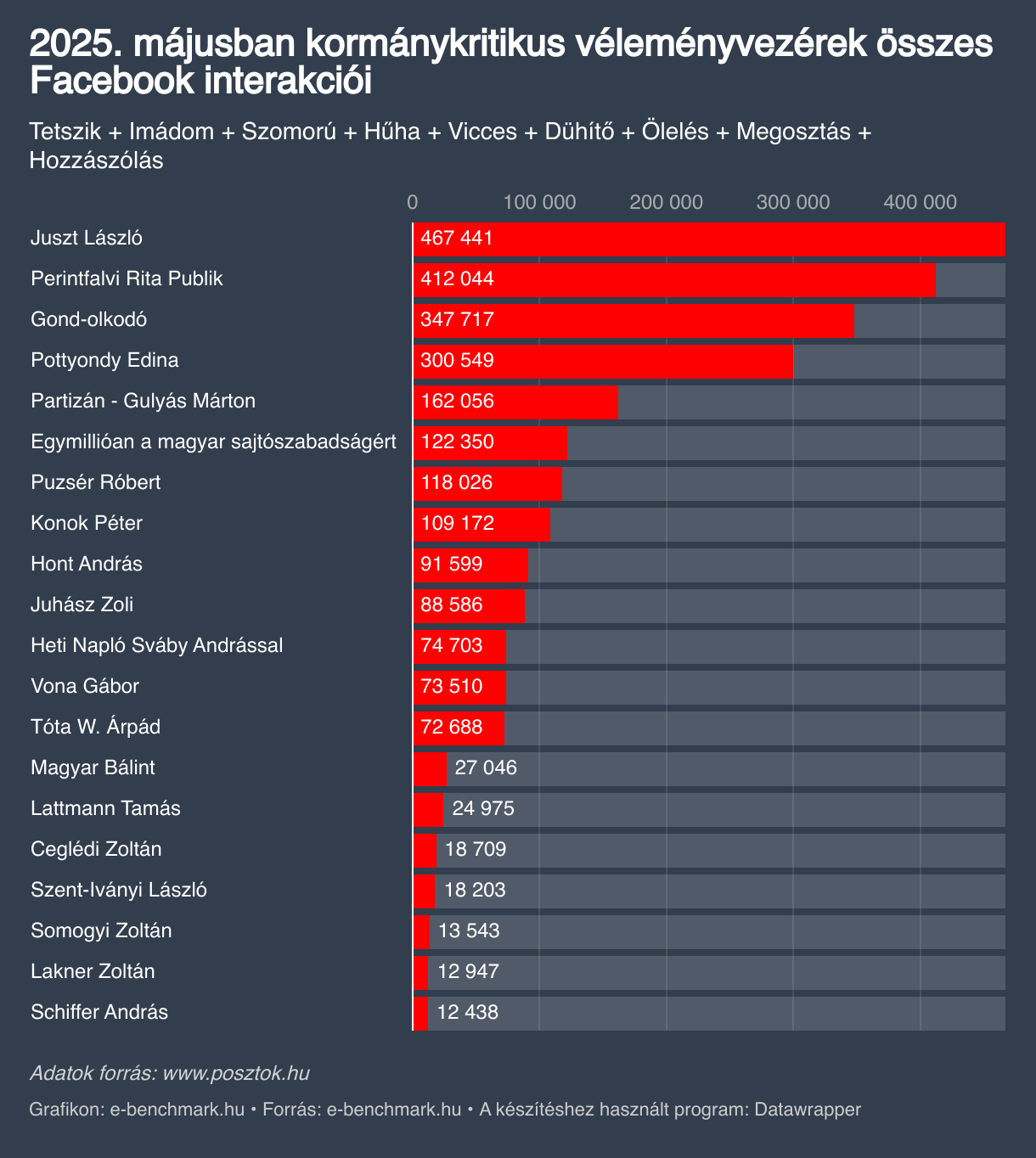 2025. májusban kormánykritikus véleményvezérek összes Facebook interakciói