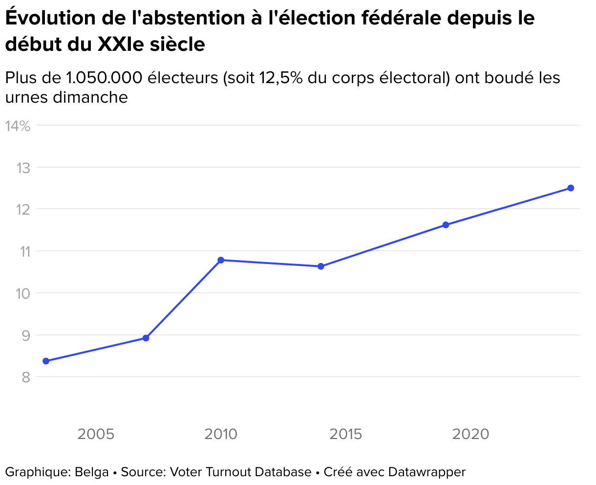 Plus de 1.050.000 électeurs (soit 12,5% du corps électoral) ont boudé les urnes dimanche