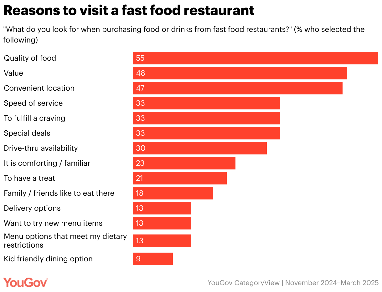 "What do you look for when purchasing food or drinks from fast food restaurants?" (% who selected the following)