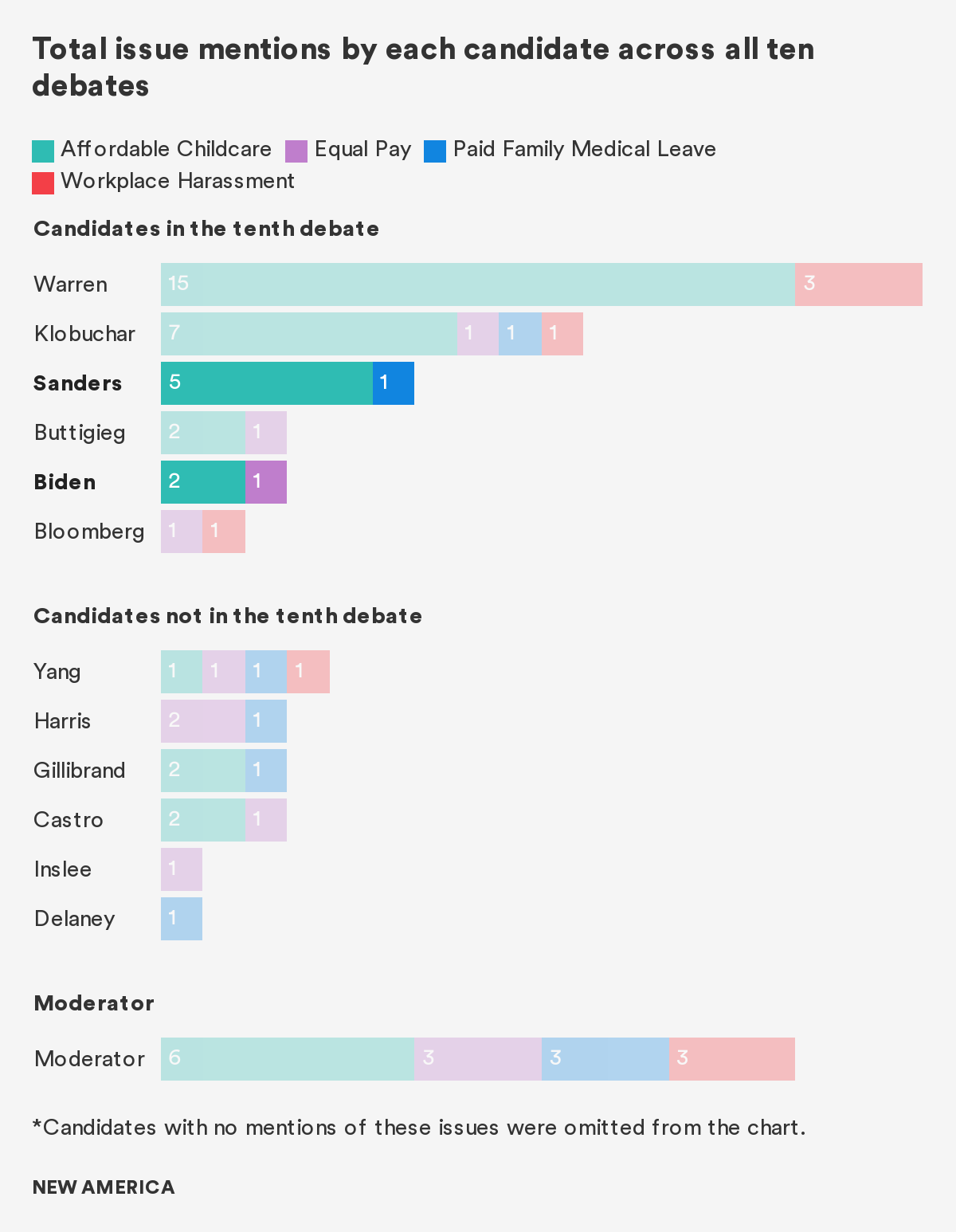 *Candidates with no mentions of these issues were omitted from the chart.