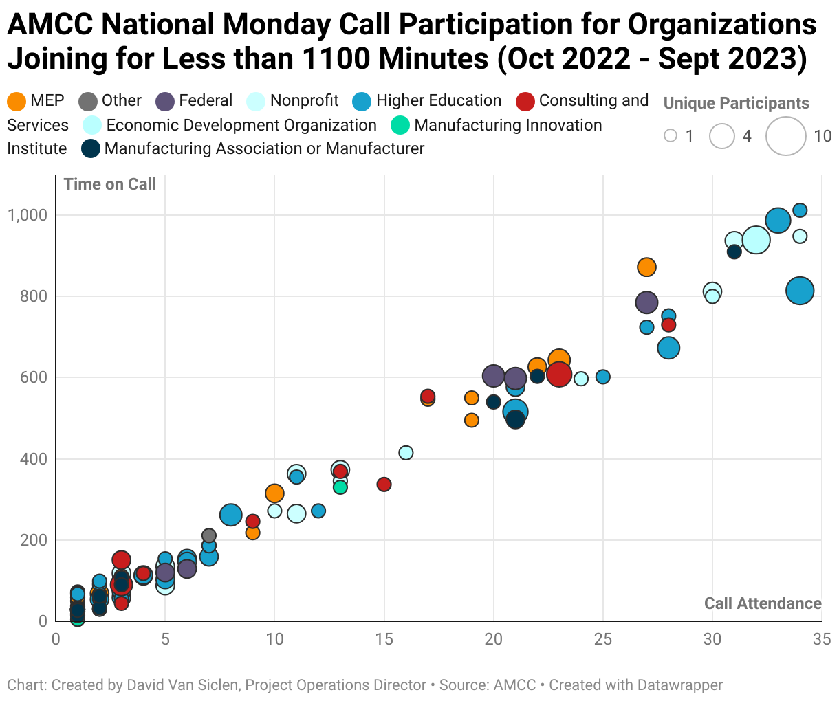 AMCC National Monday Call Participation for Organizations Joining for Less than 1100 Minutes (Oct 2022 - Sept 2023)