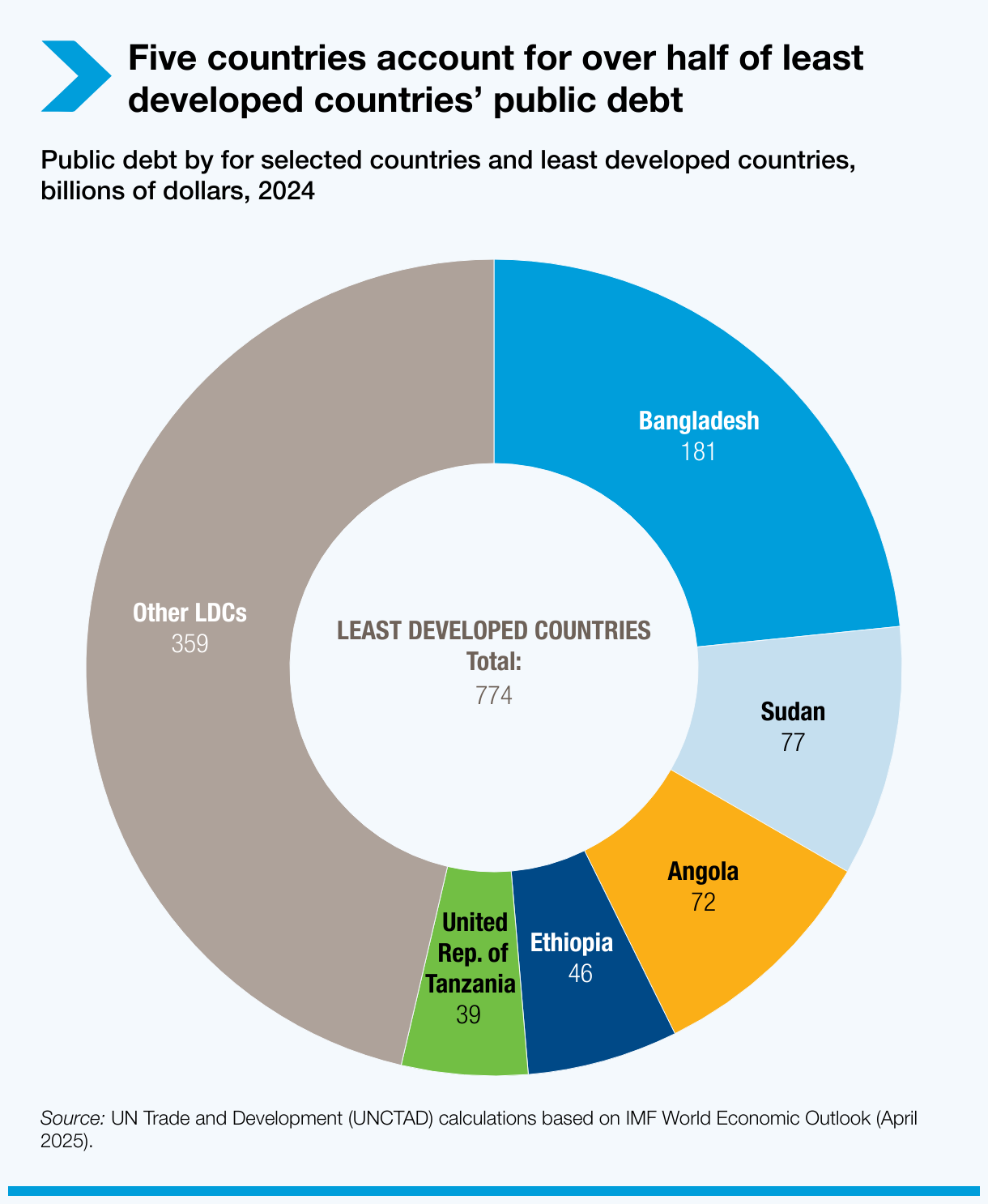 Public debt by for selected countries and least developed countries, billions of dollars, 2024