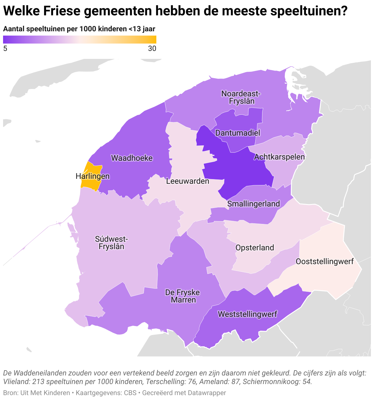 Welke Friese gemeenten hebben de meeste speeltuinen?